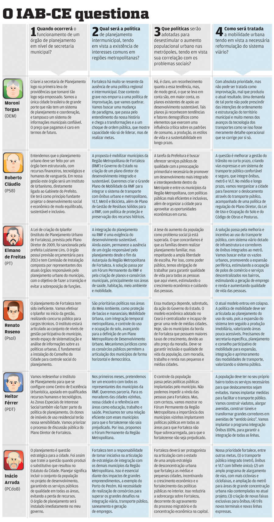 O POVO submeteu os candidatos à Prefeitura de Fortaleza a questionamentos feitos pelo Instituto dos Arquitetos do Brasil no Ceará ...