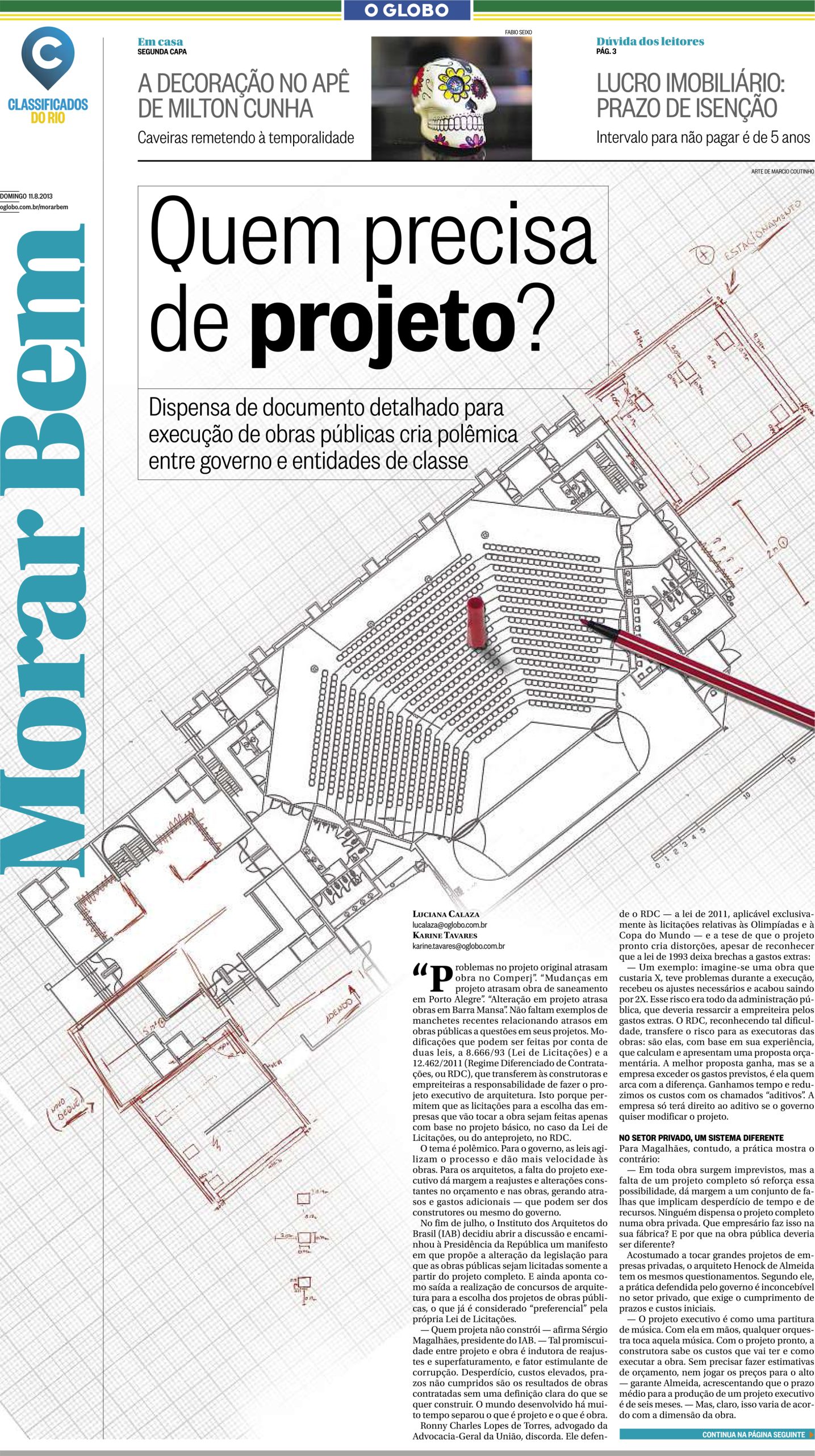 O caderno “Morar Bem”, do jornal O Globo, publicou no último domingo, 11 de agosto, matéria com o título “Quem ...
