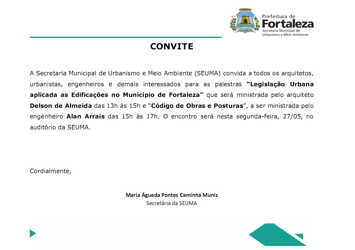 Convite para palestras na SEUMA nesta segunda-feira, 27/05