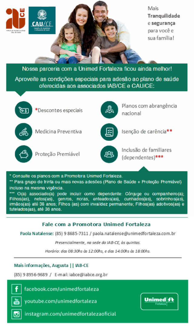 IAB-CE e CAU/CE em parceria com a UNIMED oferecem planos de saúde com descontos especiais