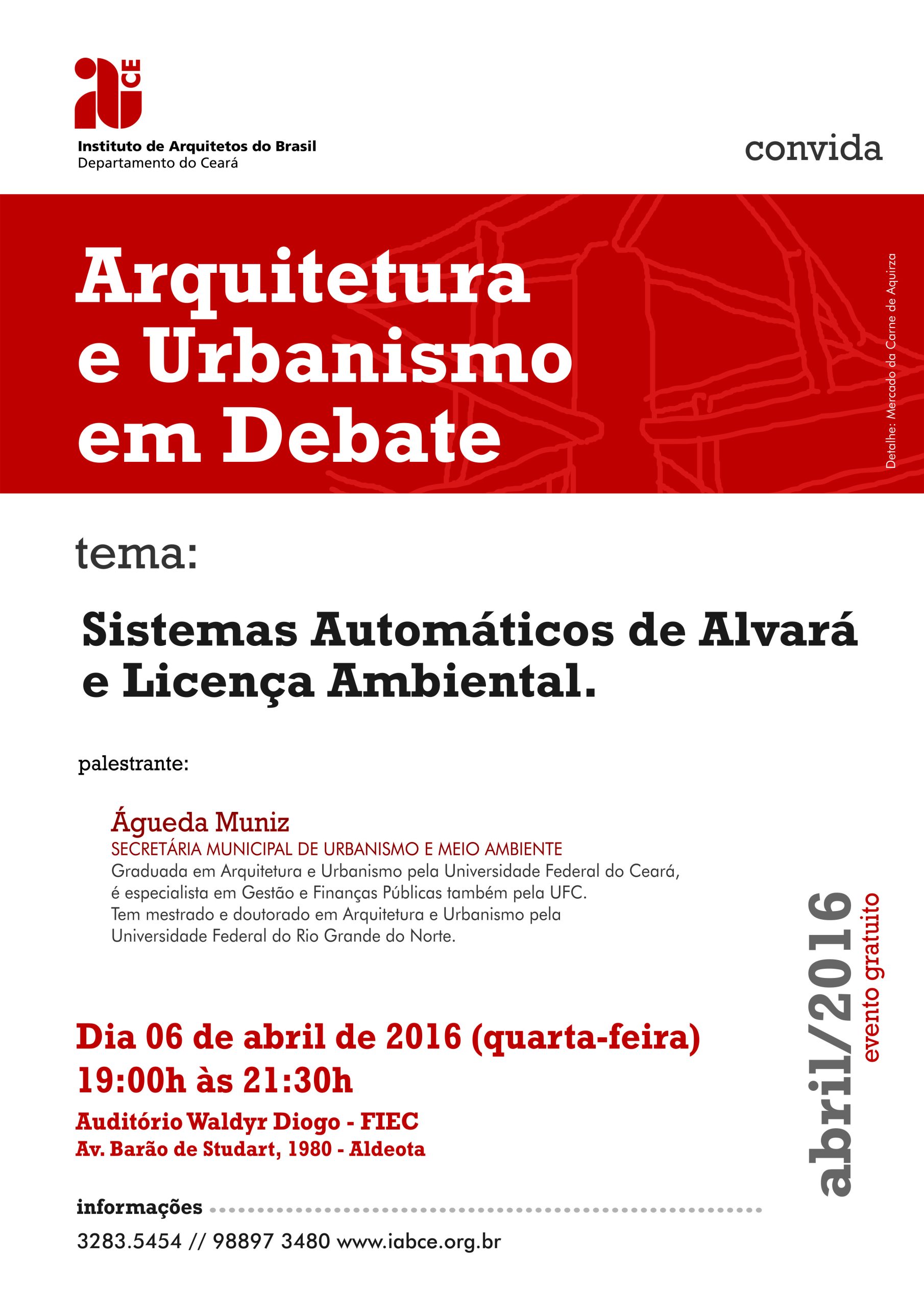 O IAB Ceará informa que o “Arquitetura e Urbanismo em Debate” com o tema “Sistemas Automáticos de ...