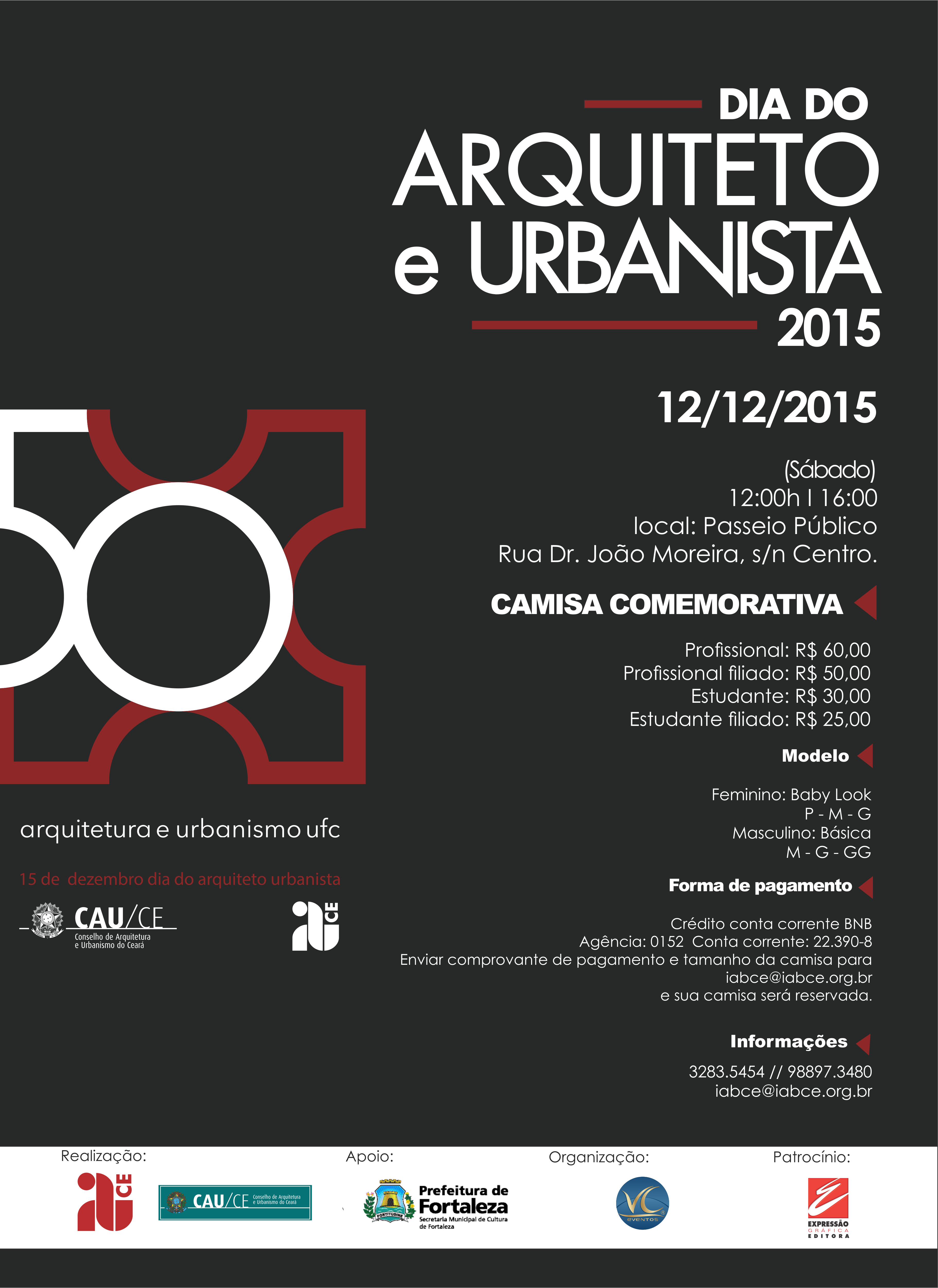 O IAB Ceará convida para a tradicional feijoada em homenagem ao Dia do Arquiteto e Urbanista, nesse ano de 2015, ...