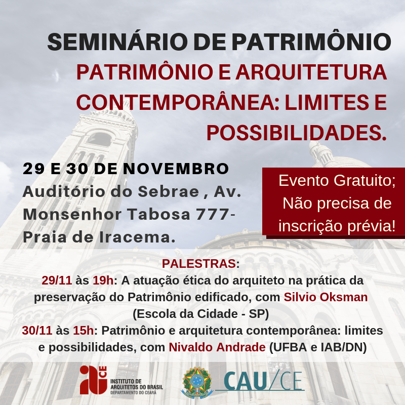 [EVENTO] Seminário de Patrimônio – Patrimônio e arquitetura contemporânea: limites e possibilidades.