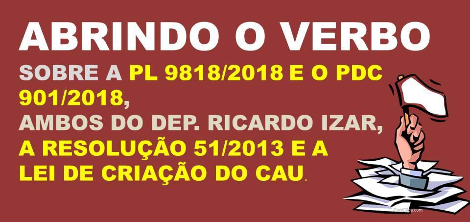 Página CAU para todos, do RJ, esclarece dúvidas sobre PL 9818/2018 e PDC 901/2018