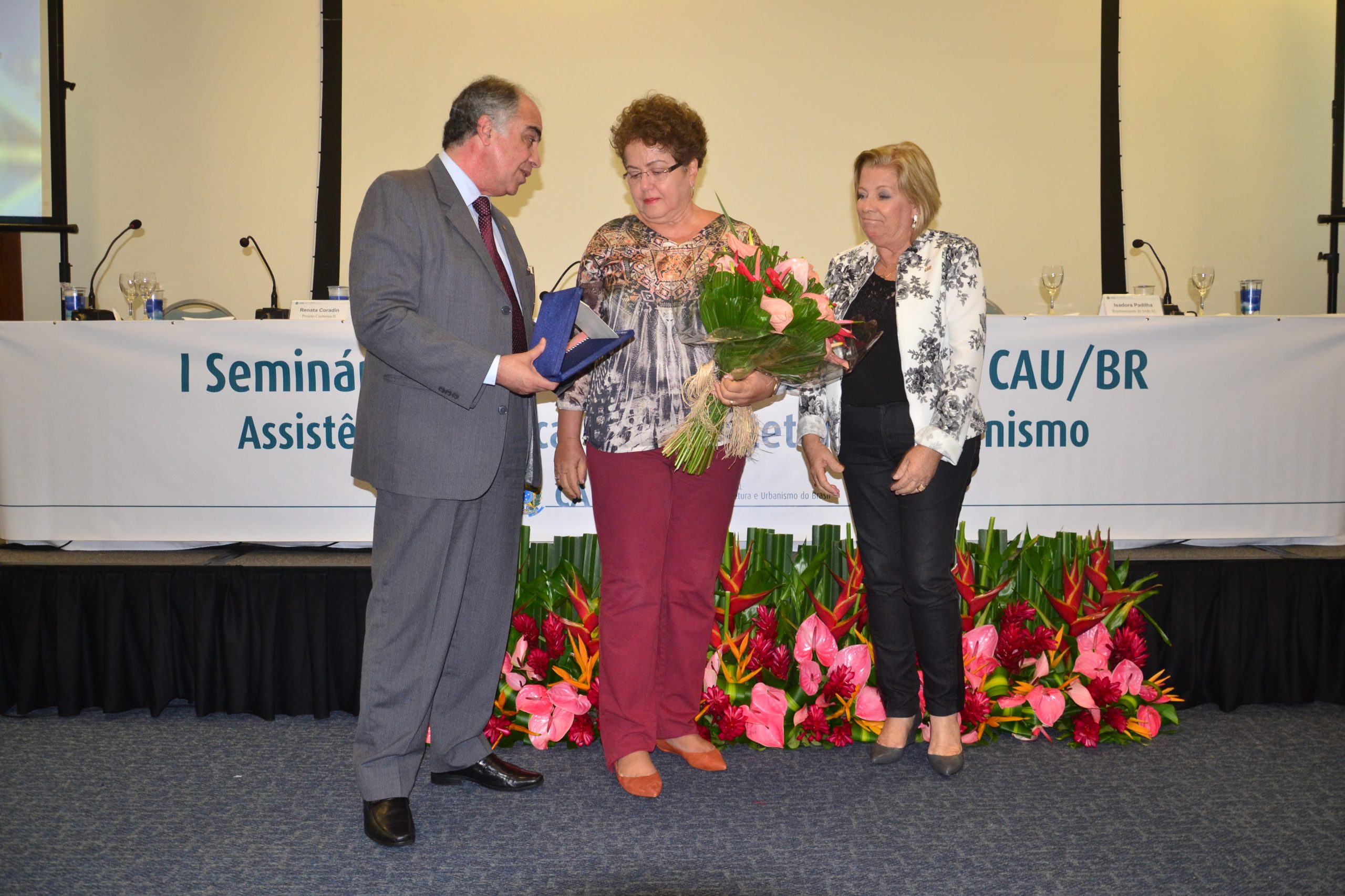 HOMENAGEM – Ao final do evento, foi realizada uma homenagem póstuma ao arquiteto e urbanista Zezéu Ribeiro, ex-deputado federal autor da Lei de Assistência Técnica e relator do Estatuto da Metrópole, que cria instrumentos legais que permitem os municípios de uma mesma região metropolitana fazerem parcerias para manutenção de serviços comuns de transporte, habitação e saúde. O presidente do CAU/BR, Haroldo Pinheiro, e a presidente do CAU/AL, Tânia Gusmão, entregaram placa de homenagem a Lola Ribeiro, viúva de Zezéu, falecido neste ano.