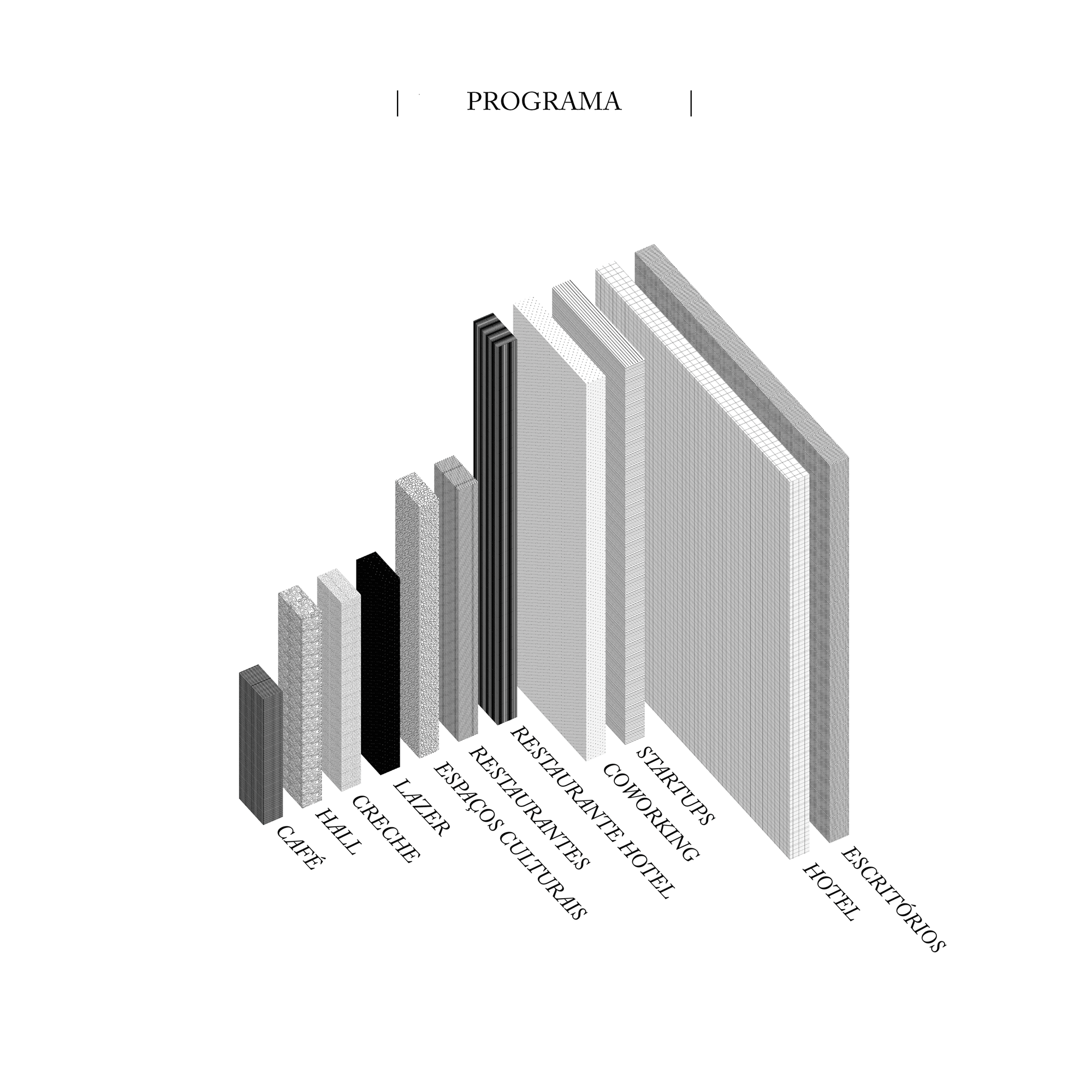 A segregação tradicional dos programas acaba por se tornar questionável dentro de uma realidade em que a monotonia e a repetição colaboram para uma data de validade cada vez mais curta. Hotéis, espaços culturais e de lazer, comércio, trabalho: programas que historicamente coexistem em prédios de uso misto resultando frequentemente no “empilhamento” de zonas programáticas ou até mesmo em sua separação através de volumetrias distintas. Seria esse o máximo que essa tipologia tem a oferecer? O uso misto ganha uma nova escala.
