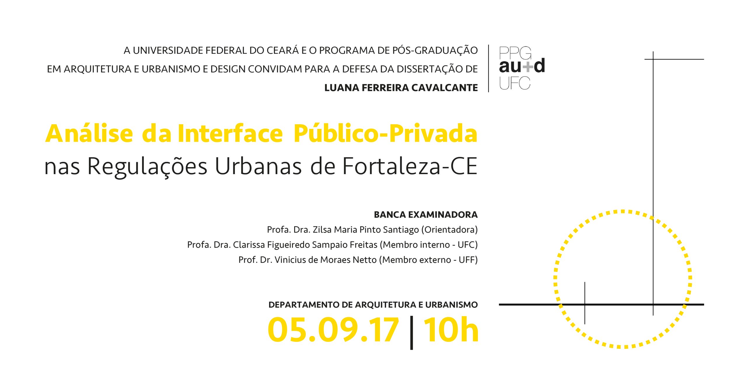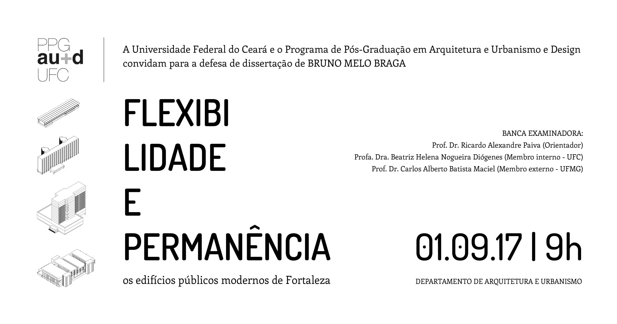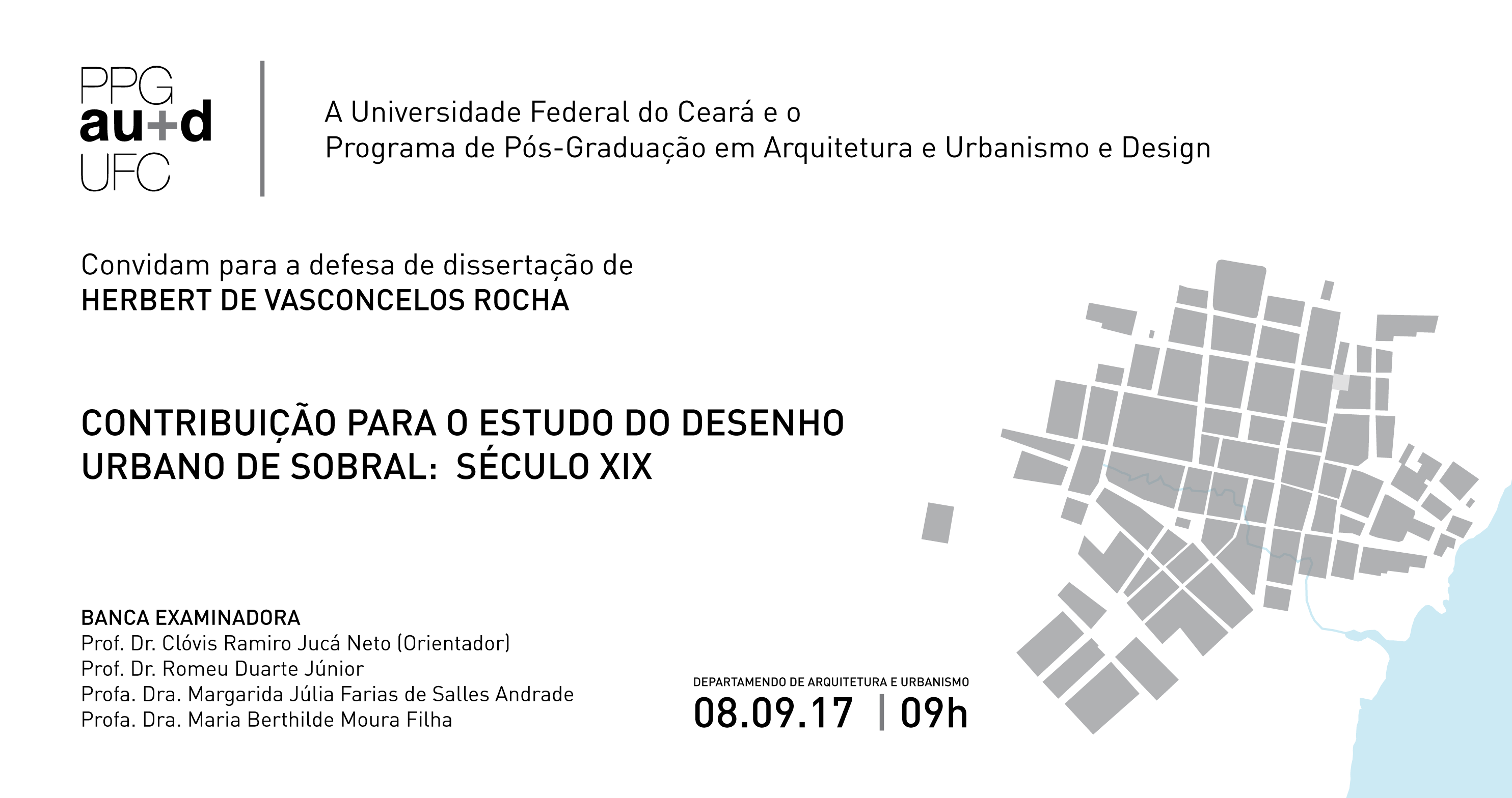 O Programa de Pós Graduação em Arquitetura e Urbanismo+Design da Universidade Federal do Ceará convida para as Defesas de Dissertação agendadas para setembro: