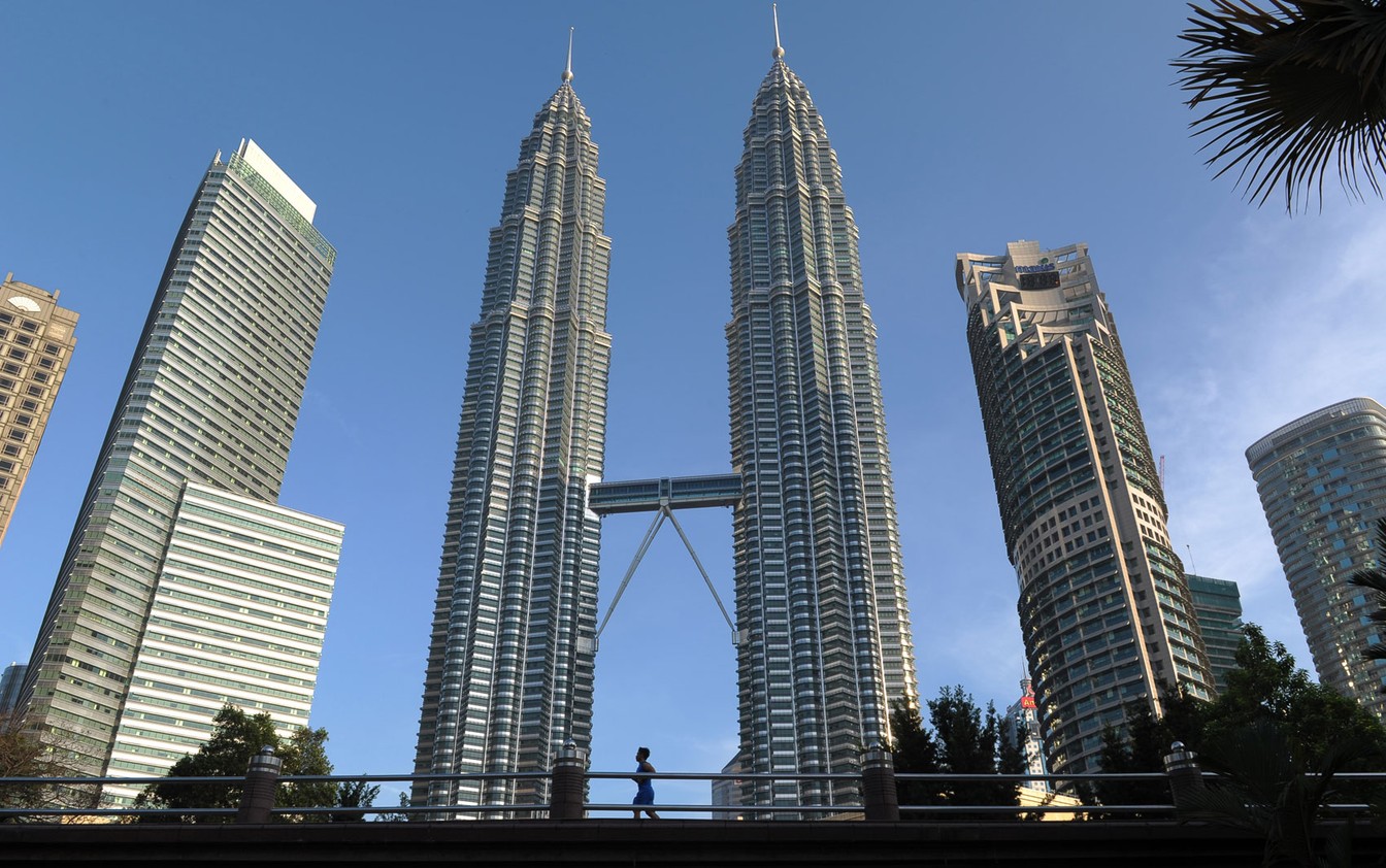 As Torres Petronas, em Kula Lumpur, na Malásia, foram desenhadas pelo arquiteto argentino César Pelli — Foto: Mohd Rasfan / AFP Photo