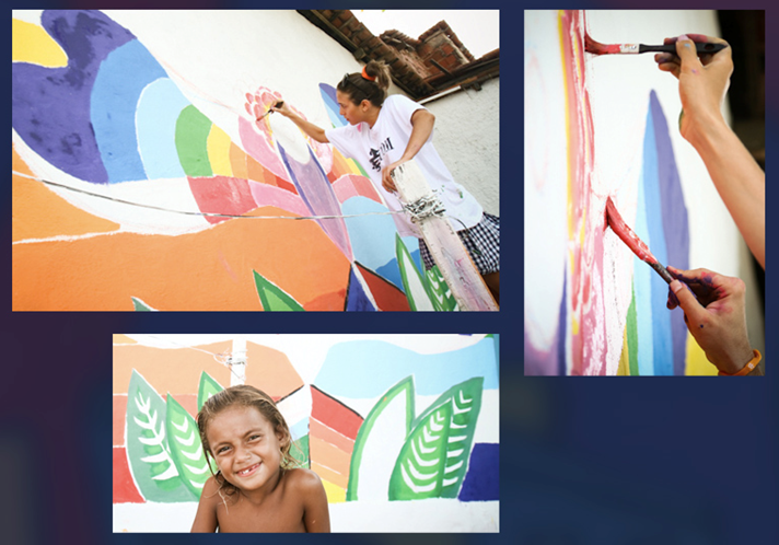 Projeto social que buscou, através da arte e de ações pragmáticas, dar vitalidade, dignidade e cor ao território comunitário, criando laços, contagiando os espaços, fazendo acontecer. O projeto foi realizado por jovens voluntários, que pintaram muros, realizaram oficinas e requalificaram espaços de convivência. Deste modo, casas e muros foram pintados, árvores plantadas, a pracinha reconstruída, lixeiras distribuídas, oficina de higiene bucal realizada – tudo ressaltando a paisagem marinha e os laços comunitários, deixando marcas no espaço e na alma, indicando um processo de continuidade.